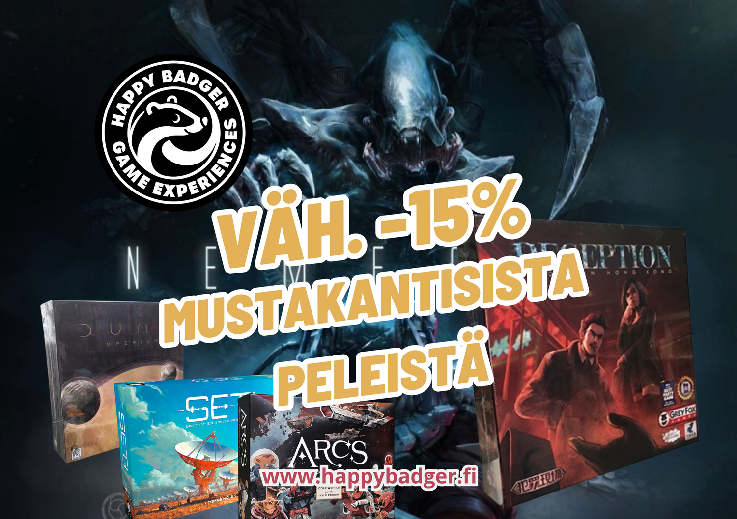 Kaikki mustakantiset pelit vähintään -15% alennuksessa! Tarjous voimassa 17.-28.11.2025!Tarjous on päättynyt!